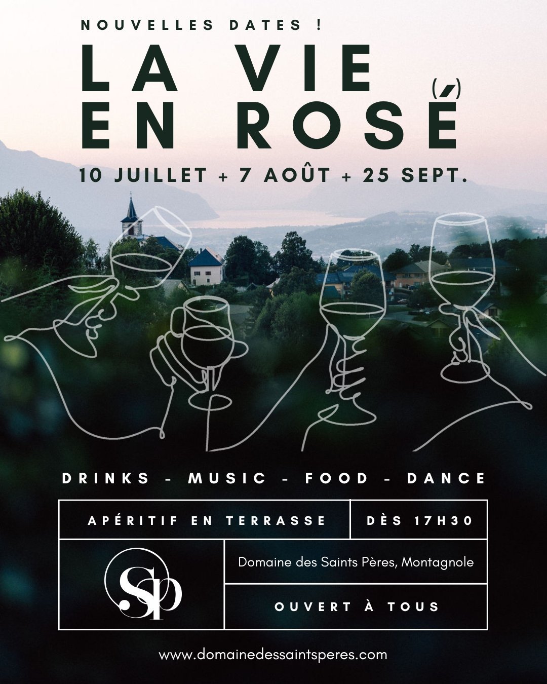 Quand la magie de la vue, la douceur des soirs d’été et le goût du rosé se rencontrent… ça se passe au Domaine des Saints Pères.